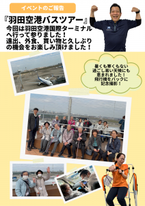 日頃の運動の成果を発揮する為、11月は外出イベントとして、今回は少し足を伸ばして「羽田空港」へ遠足に行ってまいりました。