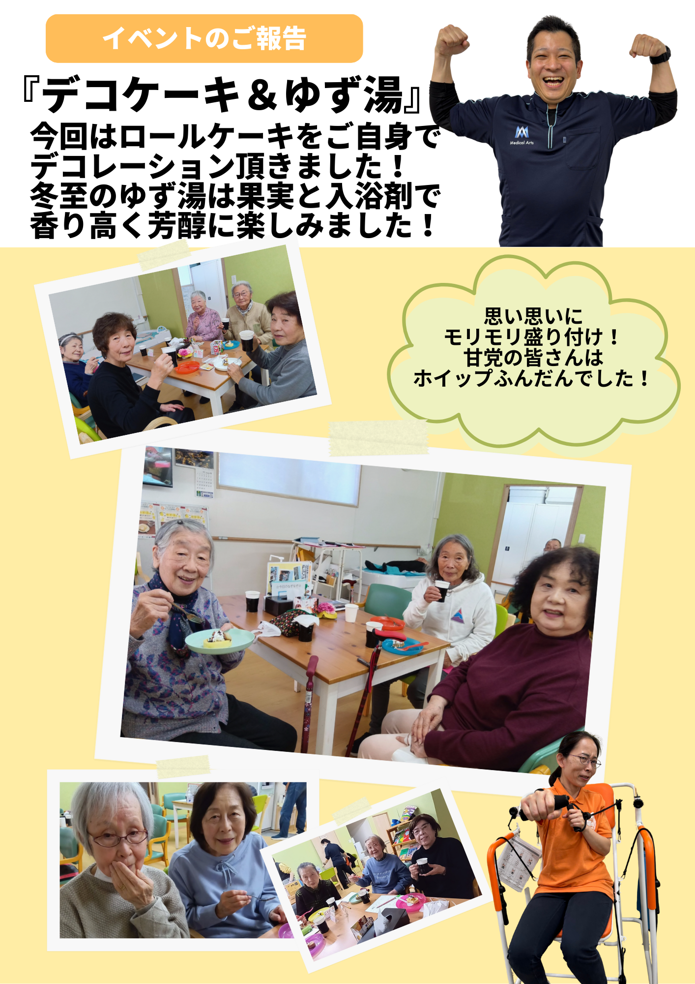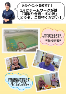 当施設の自慢である広いお風呂に浮かぶゆずの香りに、皆様「体が芯から温まるね」と大変喜ばれていました。